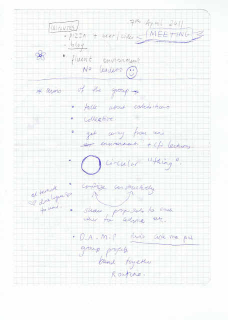 the next meeting will be on the 6th of May at Port Melbourne :) .........bring something for the Pop-swap (that Louis pitched at the last meeting!) So for people who weren't there, the idea is to bring along to the meeting something (could be a book, film, article, image, whatever really) that has been/is important or inspiring or instrumental in their life, practice, development etc....and we put them all in the middle of the room and each person takes someone else's thing to read, watch, spend time with. We will name them all so that everyone gets theirs back, but it's important that everyone who wants to partake brings something so that we have enough for everyone!